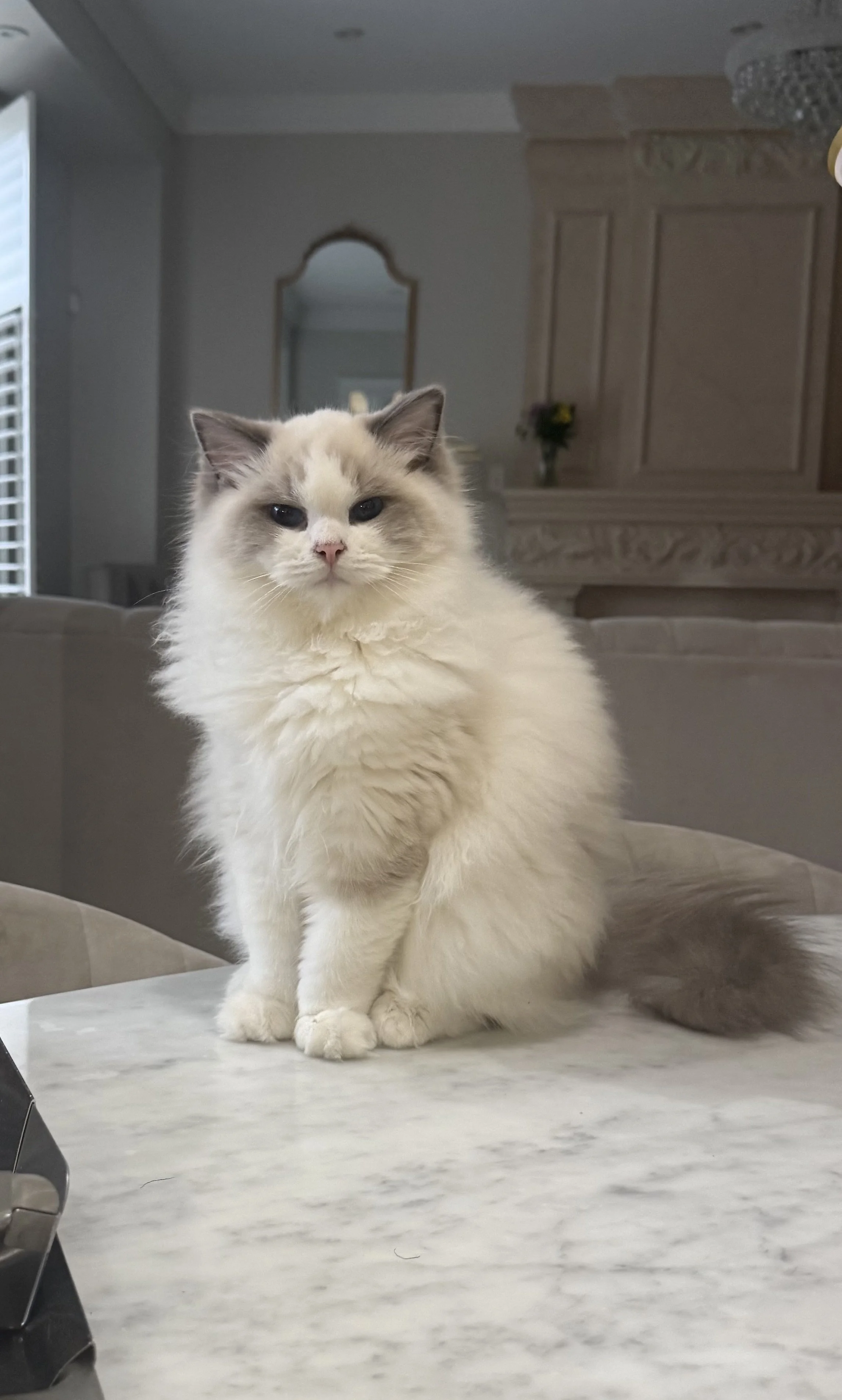 Meet Angel. She is from Florence, Italy and got her name because of how well behaved she was on our 22 hour trip from Florence to Toronto. She did not complain once and did not soil her carrier the whole trip. She comes from one of the top Ragdoll breeders in Italy that carry many champions. Her quality has been especially developed to have a fluffier and silkier coat and a more docile personality than the average Ragdoll. She was an instant lap cat since she was a kitten. Her lines are not otherwise existent in Canada. She is outstanding!